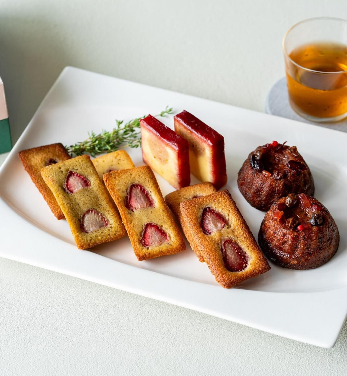 - 苺のフィナンシェ(プレーン)・苺とピスタチオのフィナンシェ・苺とヘーゼルナッツのフィナンシェ・レモンとフランボワーズのパウンドケーキ(カット)・紅茶と苺のクグロフ 各2個、ベリーの紅茶5包